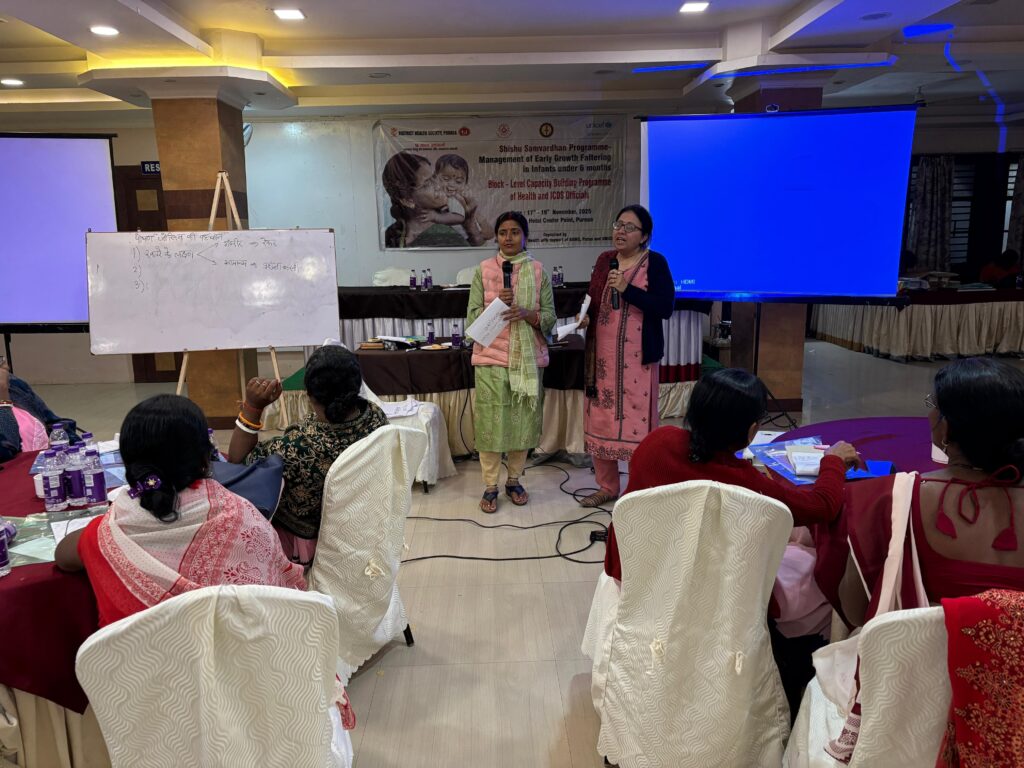– शिशु संवर्द्धन विषय पर फ्रंट लाइन कर्मियों (FLWs) की क्षमता वृद्धि की दिशा में प्रखंड स्तरीय कर्मियों के साथ हुआ तीन दिवसीय प्रशिक्षण