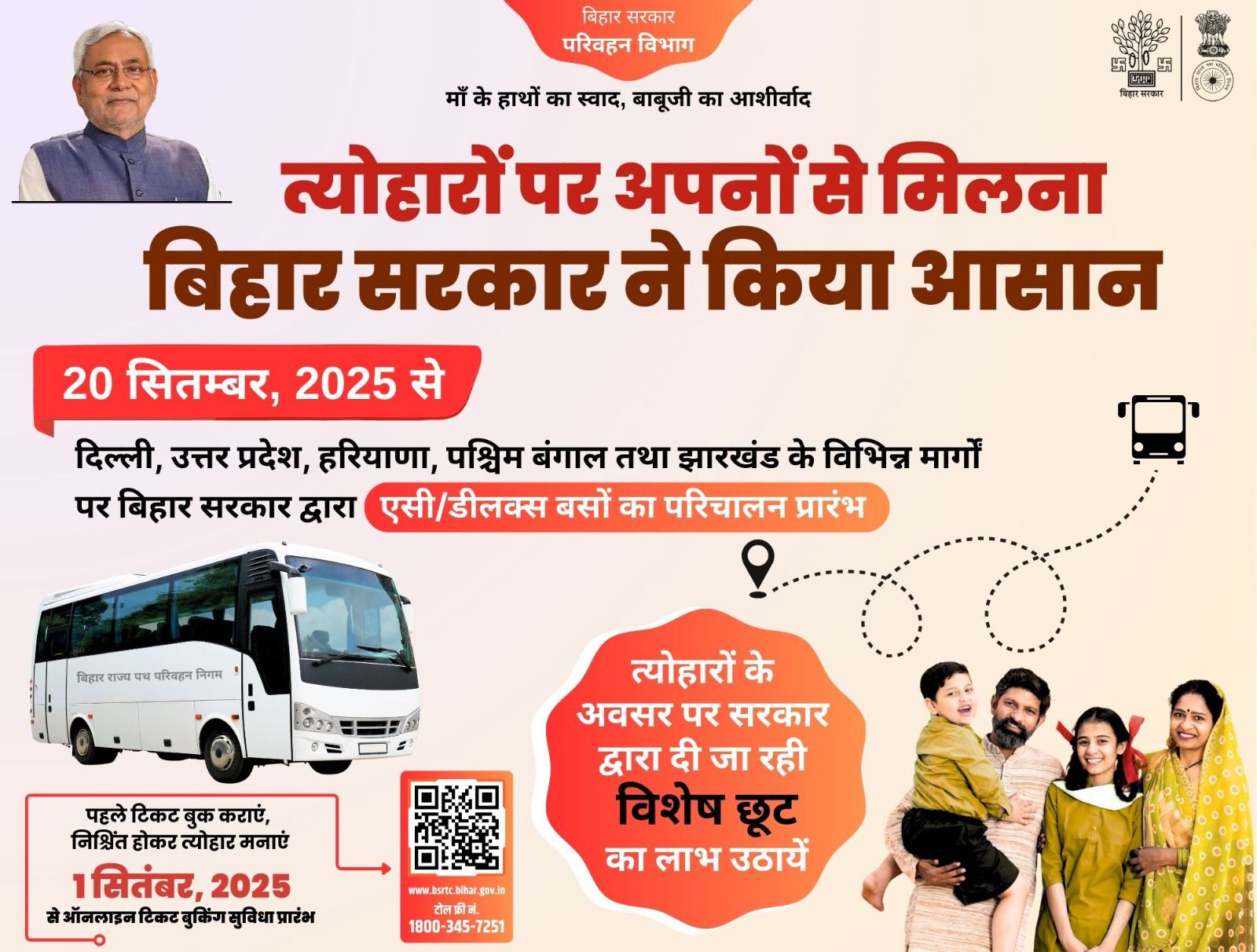 <p>यातà¥à¤°à¤¿à¤¯à¥à¤ à¤à¥ सà¥à¤µà¤¿à¤§à¤¾ à¤à¥ लिठ1 सितà¤à¤¬à¤° सॠबà¥à¤à¤¸à¤à¤°à¤à¥à¤¸à¥ à¤à¥ à¤à¤§à¤¿à¤à¤¾à¤°à¤¿à¤ वà¥à¤¬à¤¸à¤¾à¤à¤ https://bsrtc.bihar.gov.in पर à¤à¤¿à¤à¤ बà¥à¤à¤¿à¤à¤ à¤à¤°à¤®à¥à¤ हॠà¤à¥à¤à¥ हॠ। à¤à¤¸à¤¸à¥ 20 सितà¤à¤¬à¤° सॠ30 नवà¤à¤¬à¤° 2025 à¤à¥ बà¥à¤ दà¥à¤°à¥à¤à¤¾à¤ªà¥à¤à¤¾, दà¥à¤ªà¤¾à¤µà¤²à¥ à¤à¤° à¤à¤ à¤à¥à¤¸à¥ तà¥à¤¯à¥à¤¹à¤¾à¤°à¥à¤ पर à¤à¤° लà¥à¤à¤¨à¥ वालॠपà¥à¤°à¤µà¤¾à¤¸à¥ बिहारवासियà¥à¤ à¤à¥ ससà¥à¤¤à¥ à¤à¤° सà¥à¤°à¤à¥à¤·à¤¿à¤¤ यातà¥à¤°à¤¾ सà¥à¤µà¤¿à¤§à¤¾à¤à¤ मिल रहॠहà¥à¤ । यातà¥à¤°à¤¾ à¤à¥ समय à¤à¤¿à¤à¤ लà¥à¤¨à¥ वालॠयातà¥à¤°à¤¿à¤¯à¥à¤ à¤à¥ लिठसà¤à¥ बसà¥à¤ मà¥à¤ यà¥à¤ªà¥à¤à¤, डà¥à¤¬à¤¿à¤ à¤à¤¾à¤°à¥à¤¡ à¤à¤° नà¥à¤ बà¥à¤à¤à¤¿à¤à¤ à¤à¥ à¤à¤°à¤¿à¤ डिà¤à¤¿à¤à¤² à¤à¥à¤à¤¤à¤¾à¤¨ à¤à¥ सà¥à¤µà¤¿à¤§à¤¾ हॠ।</p>