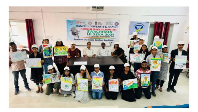 रांची : रांची यूनिवर्सिटी (Ranchi University) की राष्ट्रीय सेवा योजना इकाई द्वारा रंगोली एवं चित्रकला प्रतियोगिता आयोजन आरयू के भूगर्भ शास्त्र विभाग में एनएसएस के कार्यक्रम समन्वयक डा. ब्रजेश कुमार की अध्यक्षता में हुआ। कार्यक्रम में आरयू अंतर्गत विभिन्न विभागों के छात्र छात्राओं ने भाग लिया। कार्यक्रम में सम्मिलित प्रतिभागियों ने अपनी कला एवं प्रतिभा का परिचय दिया। प्रतियोगिता की निर्णायक मंडली में डा. चक्रधर प्रसाद महतो, डा. भारती द्विवेदी, डा. चंचल लकड़ा, डा. शिल्पी आभा खलखो, डा. कुमारी उर्वशी, अनुभव चक्रवर्ती आदि शामिल रहे।
